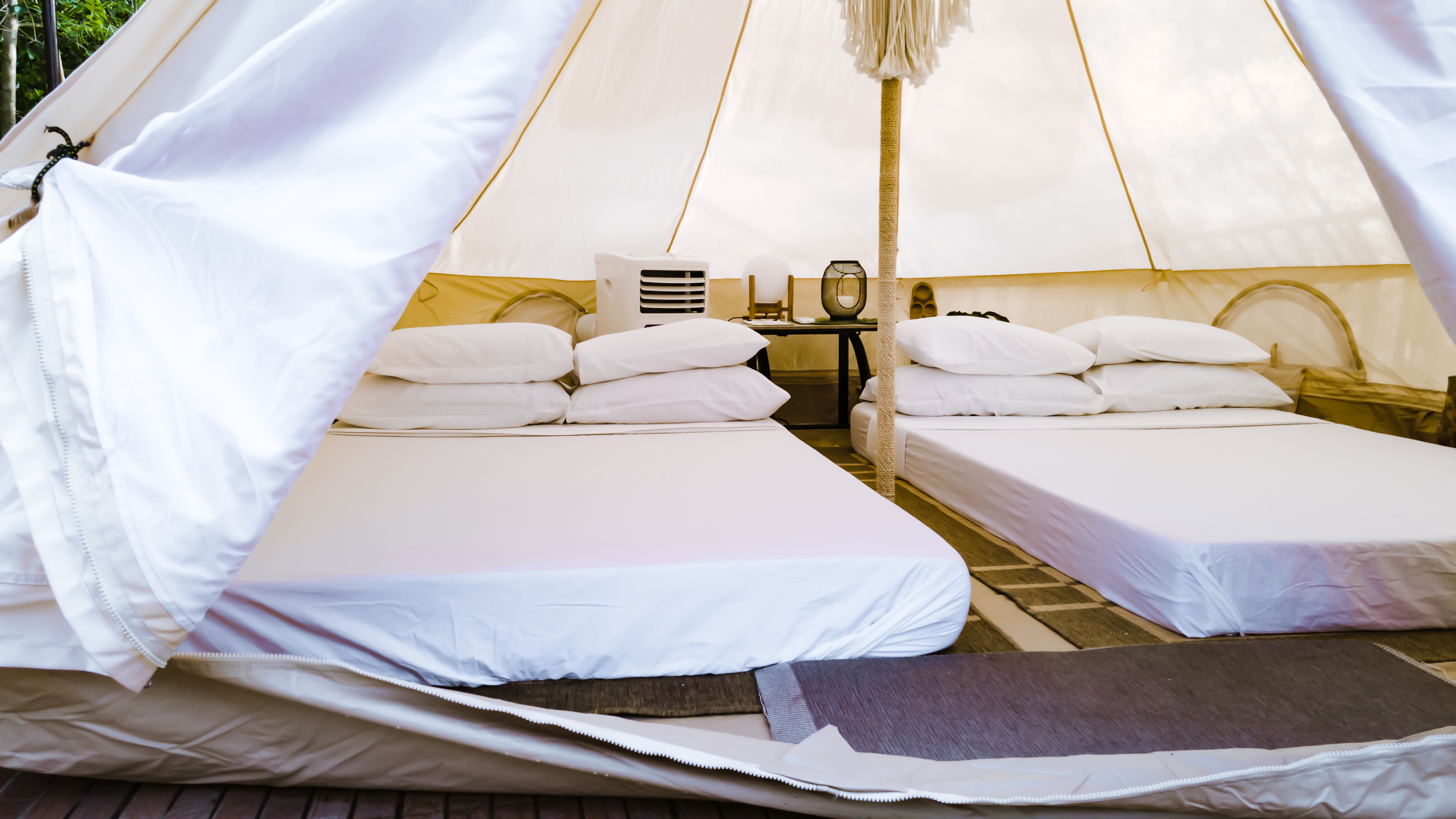 Our Camp Glamp Tents offer a cozy outdoor escape with modern comfort, accommodating up to 4 guests only in an air-conditioned space. Surrounded by nature, they’re perfect for those who want to enjoy the camping experience while staying cool, comfortable, and fully relaxed.